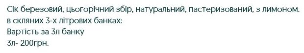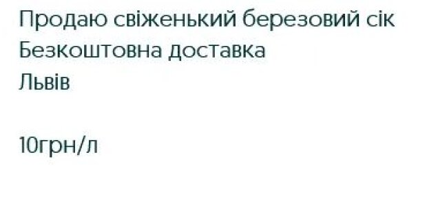 Що ж до цін, то в оголошеннях можна знайти пропозиції продажу соку за 10 грн/літр. За трилітрову банку березового соку з додаванням лимона просять вартість 200 грн. Вказується, що такі оголошення розміщують на платформі оголошень OLX.